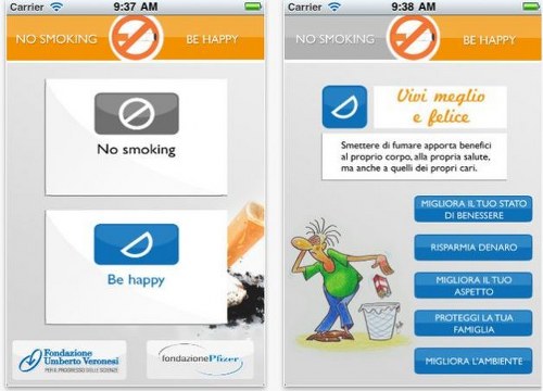 Ad opera della Fondazione Veronesi è stata realizzata una campagna di comunicazione per i giovani per invitarli a smettere di fumare. Proprio per questo si è pensato di sviluppare un’applicazione che tutti gli utenti che posseggono uno smartphone potranno utilizzare. si tratta di “No smoking, be happy”. Questo è il nome dell’applicazione che potrete scaricare gratuitamente dall’Apple Store da questo link.