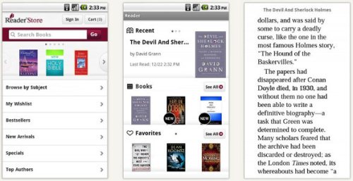 Il software è gratuito se scaricato sull’Android Market e permette di effettuare una serie di operazioni come la lettura, l’aggiunta di segnalibri, libri preferiti e soprattutto funzioni di zoom di carattere e salvataggio pagina raggiunta.