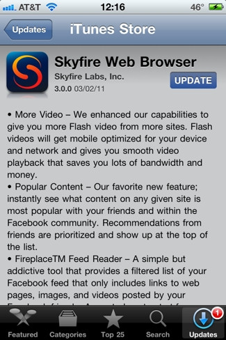 Skyfire 3.0 è disponibile su App Store a 2.39 euro, che diventano 0 euro (cioè gratis) per chi ha già scaricato e acquistato le versioni precedenti del software. Ed ora spazio a un bel video che ci mostra in dettaglio le novità del browser.