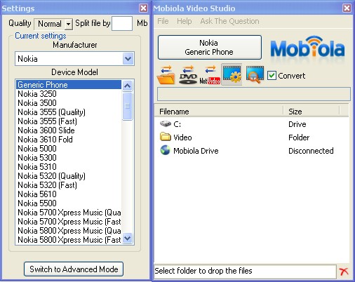 Mobiola video Studio 3.1.2 è un’interessante applicazione per PC che ci permette di trasformare i video di Youtube, Google video, avi, ecc nei formati 3gp e/o altri per il nostro cellulare. Punti di forza sono la sua alta velocità di conversione, la funzione drag and drop e la possibilità di scegliere la lingua dei sottotitoli dei film DVD che convertiamo. Scarichiamo la trial dal seguente sito. Una volta installata, attendiamo qualche minuto affinchè ci sia confermato l’utilizzo della versione di prova. La schermata iniziale sarà questa: