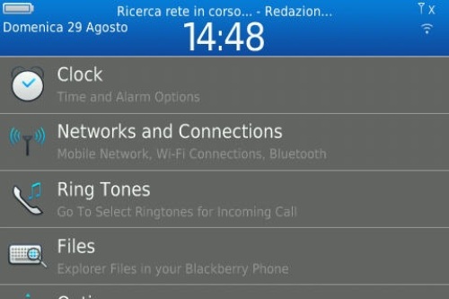 In alto ci sono le tre categorie definite main che possono essere utilizzate come collegamenti rapidi personalizzabili. Ruotando il trackball, ci si può spostare tra le stesse e metterci all’interno ciò che vogliamo. Inoltre, possiamo decidere di mettere su una sola riga tutte quelle informazioni che ci danno delle notifiche per gestire i nostri messaggi o il nostro calendario. Sull’orologio, poi, abbiamo una serie di funzionalità interessanti come la classica sveglia oltre che la gestione delle suonerie o dei file.