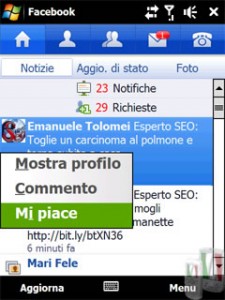 Per scaricare direttamente l’applicativo dal mobile device, occorre andare sul browser all’indirizzo http://mobile.microsoft.com/windowsmobile/en-us/downloads/facebook.mspx.