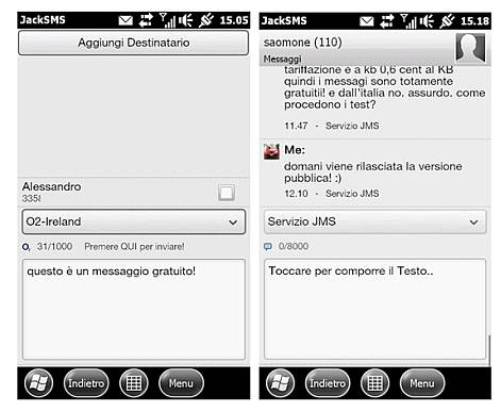 La versione di Jack SMS 1.1 si installa su Windows Mobile ed ha l’autoconfigurazione, dopo avere inserito nome utente e password della community. Da diritto all’accesso di oltre 40 servizi on line per l’invio e la ricezione degli SMS in maniera automatica, di cui alcuni permettono anche l’invio di SMS multipli. Si integra perfettamente con la nostra rubrica ed i contatti.
