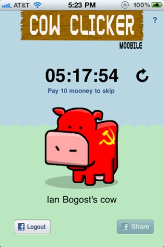 Ma non ha deciso di fermarsi ed ha realizzato quindi Cow Clicker Mobile, un’applicazione per smartphone attualmente compatibile con Apple iPhone ed iPod Touch per poter cliccare sulle proprie mucche dallo smartphone in ogni luogo. Il software è presente su App Store al costo di 79 centesimi di euro.