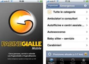 Oggi arrivano sul nostro iPhone come applicazione per smartphone. L’applicativo Pagine Gialle Mobile, come la versione cartacea è realizzato dalla SEAT ed è disponibile per tutti gli utenti che necessitano di cercare i servizi commerciali anche in mobilità. Il tipo di ricerca rimane uguale a quello standard e cioè, per nome dell’attività e soprattutto per categoria merceologica. Il portale Mobile ha in se dieci famiglie di categoria selezionatre tra cui: Tempo libero,Pubblica utilità, Emergenza, Dormire oppure Mangiare. Le ricerche libere effettuate andranno direttamente ad interrogare i database di Pagine Gialle e di Pagine Bianche.