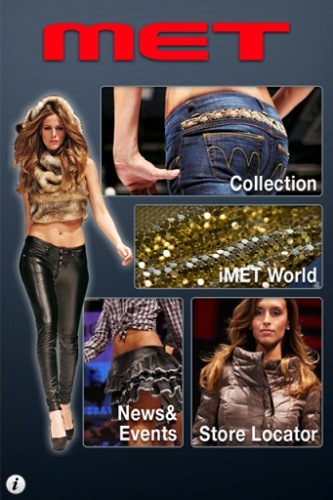 Inoltre dal giorno dell’uscita del 22 Dicembre 2010 ha ottenuto già tanti download. Tra le sezioni troviamo Collection dove ci sono i pantaloni jeans in tessuti e varianti stretch, la sezione Store Locator ci permette di cercare il negozio più vicino a noi e l’icona iMet World ci porta sui social network. C’è poi la sezione CatWalk che permette di abbinare i capi tra di loro direttamente sul device.