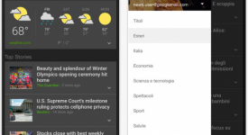 Accesso semplificato tramite scorrimento alle categorie come Prima pagina, Tecnologia, Sport e meteo;