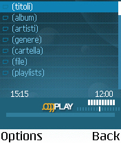 Per riempire la nostra playlist, vuota inizialmente, selezioniamo Options/Trova un nuovo file. In pochi secondi OggPlay troverà i brani .ogg presenti sulla nostra scheda di memoria e li aggiungerà automaticamente nella lista. Successivamente basterà aprire le varie cartelle per capire dove sono localizzati i nostri file audio.
