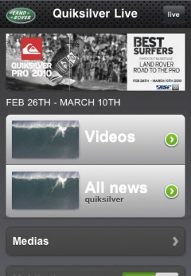 L’App si chiama Quiksilver Live e verrà presentata al Quiksilver Gold Coast Pro in Australia che è partito ieri 27 Febbraio e durerà fino al 10 Marzo del 2010.