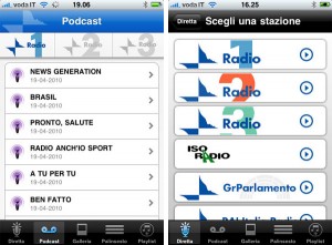 Grazie a questa utility, anche gli italiani all’estero potranno di conseguenza ascoltare le proprie trasmissioni preferite se in possesso di iPhone. Si tratta di un software che oltre a permettere di ascoltare la radio in diretta streaming, consente di consultare il palinsesto di programmi per singola stazione e soprattutto di visualizzare le schede e le immagini informative per ogni singola trasmissione. Oltre a questo sarà possibile a breve tramite un modulo, interagire con la stessa trasmissione tramite l’invio di e-mail o più semplicemente di SMS.