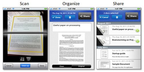 Scan Pages si appoggia alla fotocamera integrata nell’iPhone e nell’iPod Touch. Oltre che singole pagine di documenti è possibile catturare porzioni di riviste, insegne, biglietti da visita e schermate. Sulle immagini acquisite sono possibili due interventi diretti da parte dell’utente che può anzitutto ritagliare l’area dell’immagine di suo interesse in modo da escludere elementi di disturbo o parti non rilevanti. Grazie alla funzione “Clean-up” è inoltre possibile avviare un processo automatizzato di ripulitura dell’immagine il cui scopo è quello di migliorare la definizione dei caratteri rispetto allo sfondo. Questo strumento funziona al meglio con testi a caratteri neri su sfondo bianco mentre negli altri casi può essere conveniente non applicare il filtro.