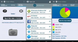 Memory Boost (Strumento per svuotare la memoria interna, inoltre con un tap sul grafico si visualizzeranno tutti i processi in esecuzione, tali processi possono essere selezionati o deselezionati