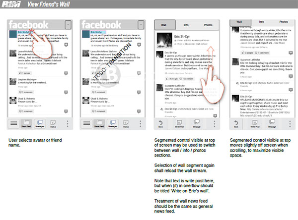 Sulla sinistra invece trovate la schermata relativa alle app, che non poteva che assomigliare a quella che da anni mette a disposizione iOS e RIM. Qui sotto invece potete dare uno sguardo alle app dedicate a Twitter e Facebook che la stessa RIM sta sviluppando. L’app Twitter ricorda in tutto e per tutto quella presente su App Store, con quei 5 tab nella parte bassa e il logo posto nella barra in alto. Anche l’apertura di un tweet ricorda quella dell’app per iOS.