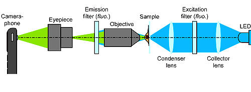 Il sistema è molto semplice. CellScope viene fissato nel retro del cellulare in modo tale da far coincidere l’obiettivo della camera del telefono con quella del microscopio. A differenza della versione precedente, per l’illuminazione ottica viene utilizzato un LED schermato, che rende stabile a 460 nanometri la lunghezza d’onda della luce messa. In questo modo è rilevabile la soluzione di contrasto.