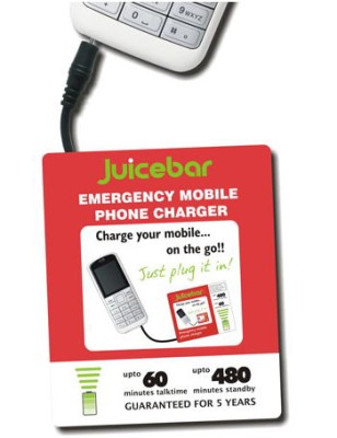 Una sorta di alimentatore portatile che garantisce al telefonino ormai scarico un’ulteriore autonomia di quasi 500 minuti in stand by e di un’ora in conversazione. JuiceBar è compatibile con tantissimi modelli grazie alla presenza di diversi adattatori con cui collegare i propri terminali (è presente anche un adattore per il collegamento tramite porta miniUSB).