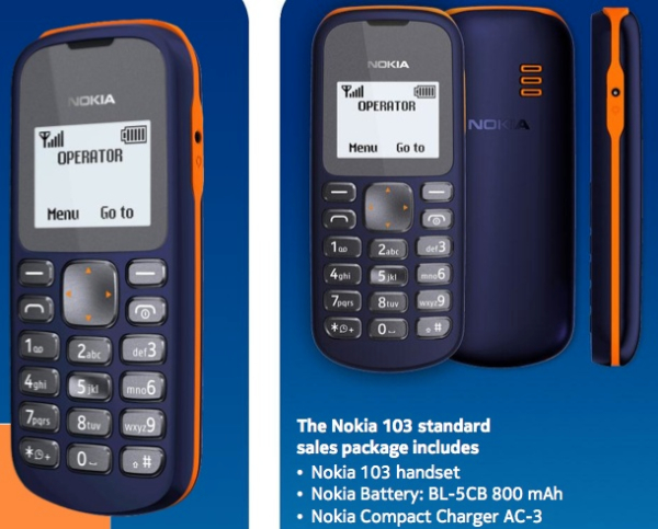 Nokia ha annunciato ufficialmente quello che è, senza ombra di dubbio, il telefono più economico del mondo. Conosciuto semplicemente come Nokia 103, si tratta di un telefono entry level destinato ai mercati emergenti, venduto al prezzo di 20 dollari.
