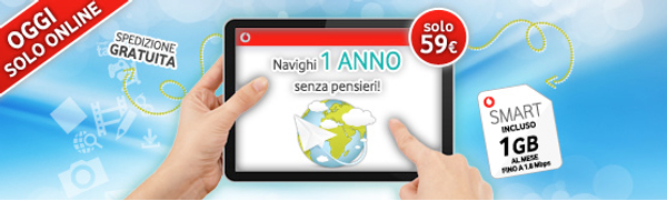 Vodafone propone 12 mesi di navigazione senza limiti, 1 GB al mese a 1,8 Mbps, superata questa soglia sarà possibile continuare a navigare con velocità ridotta.
