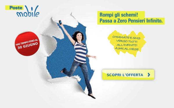 PosteMobile propone una nuova offerta di benvenuto per i nuovi clienti. Chi attiverà una nuova SIM entro il prossimo 30 giugno 2012 avrà la possibilità di ottenere l’opzione Internet 100 ore gratis per il primo mese. Per accedere alla promozione Internet 100 ore andrà attivata in un ufficio postale o direttamente online sul sito postemobile.it.