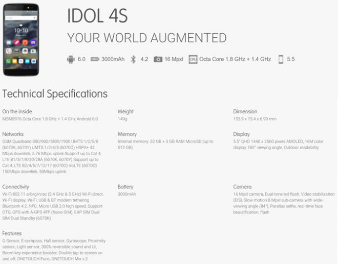 Trapelano in queste ore le specifiche tecniche di due nuovi smartphone Android. Stiamo parlando dei cosiddetti Alcatel OneTouch Idol 4 ed Alcatel OneTouch Idol 4S.