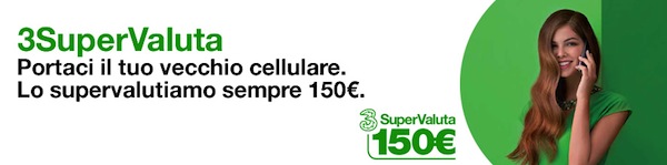 Si tratta di 3 SuperValuta, l’iniziativa con cui il gestore va a supervalutare un vecchio terminale di un cliente per un contro valore di 150 euro.