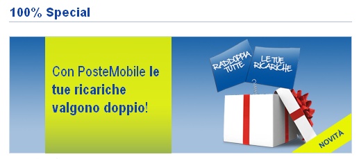 PosteMobile 100% Special è una nuova promozione riservata ai clienti che acquistano in un ufficio postale una nuoca SIM PosteMobile e contestualmente richiedono la portabilità del proprio numero. Il piano prevede il raddoppio di tutte le ricariche effettuate fino ad un importo massimo di 50 euro al mese. Il profilo tariffario di PosteMobile 100% prevede: