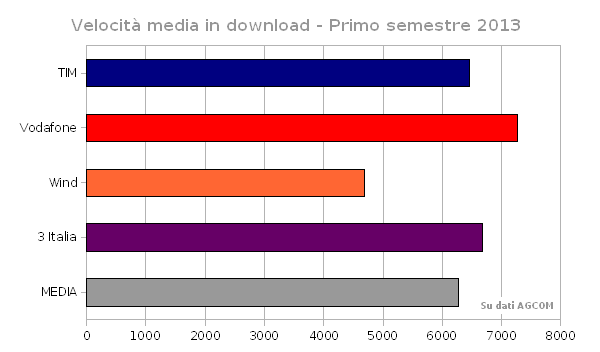 - Vodafone: La rete Vodafone risulta mediamente la più veloce in download con una velocità di 7260 kbps. Buone prestazioni anche per quanto riguarda velocità di upload (1823 kbps) e tempo di ritardo (51,32 ms).