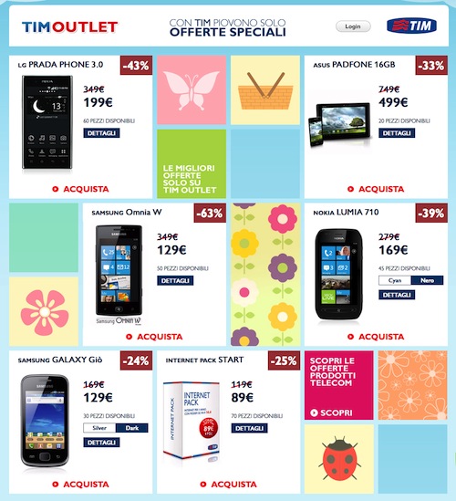 Da notare che gli acquisti sul TIM Outlet possono essere effettuati solo e soltanti dagli utenti registrati su www.tim.it e che la spedizione per i prodotti acquistati è completamente gratuita.