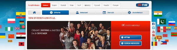 TIM International è riservata ai clienti con codice fiscale straniero e prevede un costo di attivazione di 5 euro (l’attivazione è gratuita per i nuovi clienti). Il successivo rinnovo avviene invece a 0 euro ogni mese. La tariffa include fino a 1000 minuti al mese a costo agevolato che possono essere utilizzati per chiamare numeri fissi e mobile di molti paesi del mondo con un costo compreso tra 2 e 20 cent/min. TIM International prevede uno scatto alla risposta di 16 cent ed utilizza una tariffazione a scatti anticipati di 60 secondi.