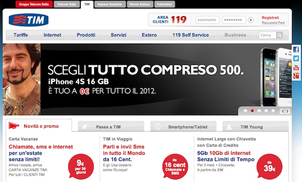 L’estate 2012 porta una ventata di freschezza sul sito di TIM che si rinnova ed adotta un nuovo layout molto più moderno, fresco e mobile-friendly. Il nuovo tim.it è caratterizzato dalla presenza di comodi menu a comparsa e dalla presenza, in home, di banner con le ultime offerte commerciali, ma non mancano anche funzioni inedite.