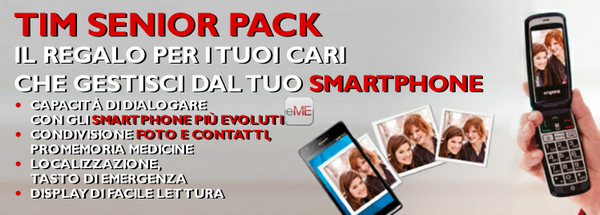 Tim Senior Pack è la proposta di TIM dedicata ai nonni e più in generare a tutti colori che amano una tecnologia semplice da usare. L’offerta include infatti un telefono cellulare molto semplice da utilizzare ma completo nelle funzioni più importanti in abbinamento con 6 mesi di traffico incluso.