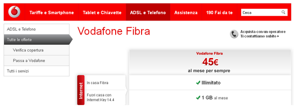 L’offerta Vodafone Fibra prevede un costo di 45 euro al mese e comprende:
