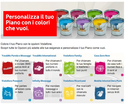 Tutti i clienti possono infatti scegliere di arricchire il proprio piano attraverso le 8 opzioni ideate da Vodafone e soddisfare a pieno le proprie esigenze di comunicazione. A ciascun colore e’ associata un’opzione diversa: