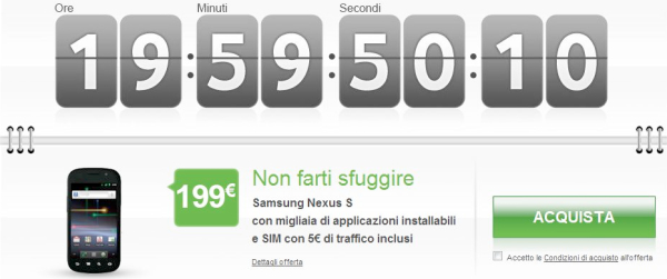 Il numero di adesioni all’offerta Samsung Nexus S su Countdown di mercoledì 1 febbraio è stata superiore alle scorte del prodotto, attualmente fuori produzione, e alle nostre ragionevoli previsioni.