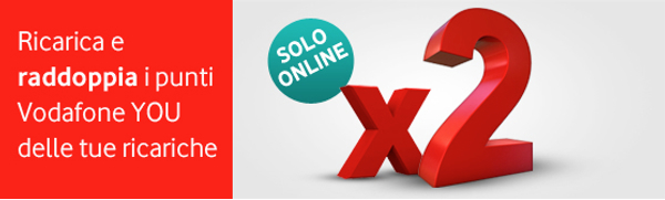 Da oggi e fino al 23 febbraio Vodafone lancia una nuova promozione legata alle ricariche online. Effettuando una ricarica online da almeno 15 euro l’operatore raddoppia i punti Vodafone YOU. L’offerta è valida solamente per le ricariche effettuate online e solo per importi superiori a 15 euro.