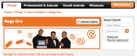 Mega Ore di Wind, rispetto ad altre offerte Wind del passato, permette di navigare in Internet in base alla durata della connessione, anziché in base al volume dei kB scambiati, e con l’opzione Mega Ore con soli 9 Euro mensili si naviga in Internet fino a 50 ore al mese.