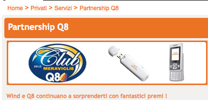 Wind e Q8 continuano il rodato sodalizio con fantastici premi: infatti dal 1° maggio 2009, sul catalogo premi Q8 “Club delle Meraviglie” Wind sarà presente con due nuove offerte davvero interessanti: un cellulare e una chiavetta per l’internet mobile. Il catalogo premi Q8 “Club delle Meraviglie” si arricchisce così di premi che strizzano l’occhio a coloro che sono sempre alla ricerca dell’ultima novità tecnologica disponibile; dal canto suo Wind si accaparra nuovi clienti a fronte di un impegno economico non eccessivo. I premi a disposizione sono il cellulare Sony Ericsson T303 e la Wind Internet Key Huawei E169 e la promozione è valida dal 1° maggio 2009 sino al 30 settembre 2009.
