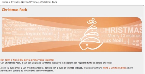Wind Christmas Pack offre infatti a soli 10 euro ben 2 SIM Wind Ricaricabili, ognuna con 5 euro di traffico incluso e il piano tariffario Wind 9 Limited Edition che permette di parlare ed inviare SMS a soli 9 centesimi. Ma “i regali” di Wind non finiscono qui.