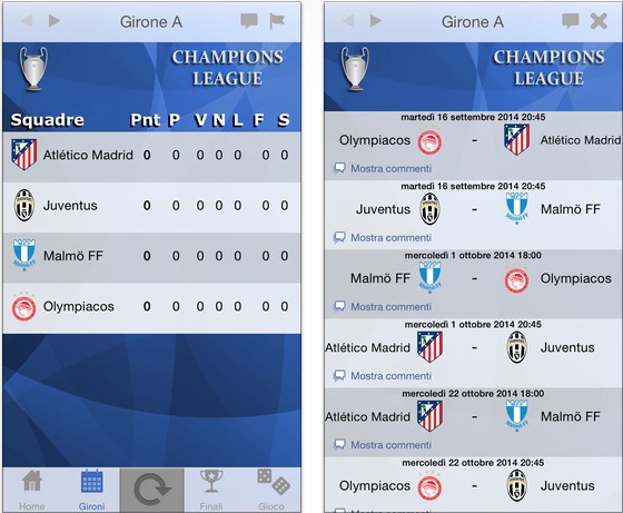 Champions Live 2014-2015, ecco l’app per iOS