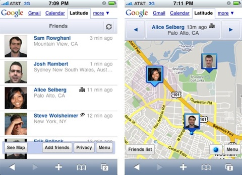 Google Latitude è un rivoluzionario servizio che, grazie al GPS contenuto nei moderni telefoni cellulari, permette di tenere costantemente aggiornata la propria posizione, così come quella dei propri amici, su una mappa. Lasciando perdere la pura dietrologia e la libertà violata, Google Latitude appare limitato su iPhone e iPod touch per via di questa versione sotto forma di WebApp e non di applicazione vera e propria.