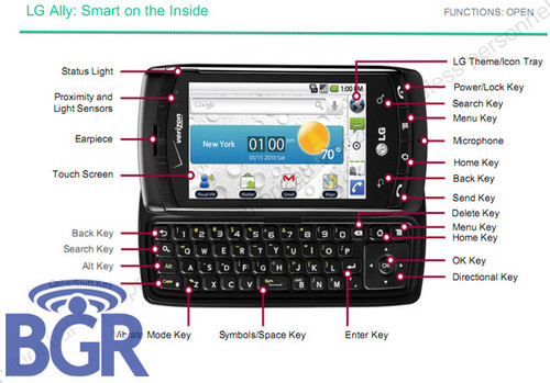 Tante conferme e nessuna sorpresa degna di nota. Potremmo riassumere così il contenuto della scheda tecnica dell’LG Ally, il nuovo smartphone con Android 2.1 facente parte della campagna promozionale del film Iron Man 2 di cui vi abbiamo parlato qualche giorno fa. A svelare tutti i dettagli sul nuovo terminale coreano il sito Internet BGR, che ha pubblicato qualche foto (come quella qui sopra) ed una minuziosissima lista delle peculiarità tecniche del dispositivo. Pronti a scorrerla insieme a noi? Bene, si comincia!