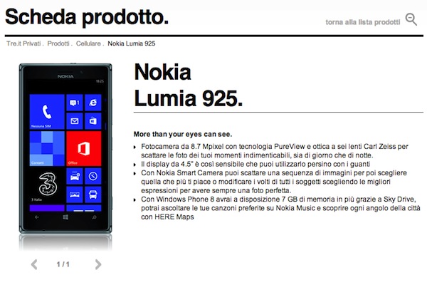 L’operatore 3 Italia ha finalmente inserito nei suoi listini il tanto atteso Nokia Lumia 925 che ora può essere acquistato da tutti i clienti del noto carrier scegliendo una tra le apposite offerte disponibili.