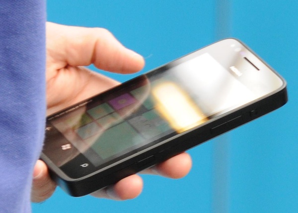 Sebbene la qualità sia piuttosto buona, non si riescono a scorgere bene i dettagli del device. Ci pare di intravedere la nuova Start Screen del sistema operativo redmondiano (disponibile anche in Windows Phone 7.8) ma i riflessi non ci permettono di dare un giudizio definitivo.