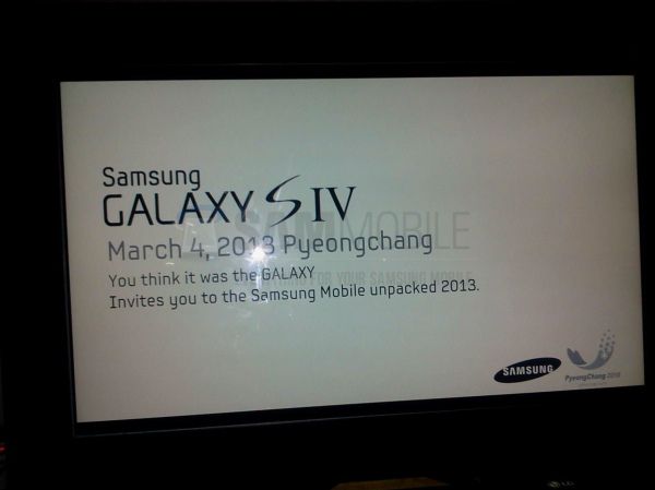 Ma la storia non finisce qui perchè poche ore fa un responsabile della divisione libanese di Samsung ha confermato su Facebook che il Galaxy S4 non uscirà prima di maggio, anche se non ha voluto (o potuto) rivelare altro. Come se non bastasse un utente coreano del forum di SamMobile ha ricevuto un invito per la presentazione del Galaxy S4 prevista a Pyeongchang (Corea del Sud) il 4 marzo, poco dopo il Mobile World Congress di Barcellona. Ovviamente non sappiamo se l’invito sia reale o meno, giudicate voi dalla foto qui sotto.