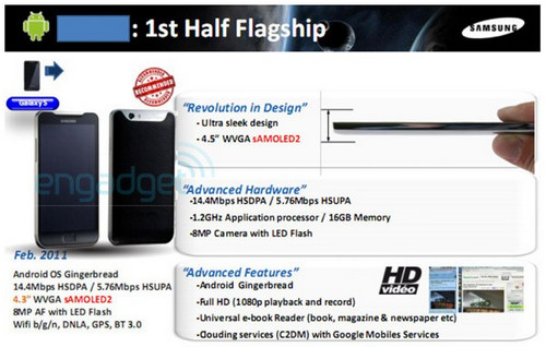 Il sito “Engadget” ha pubblicato alcune diapositive che preannuncerebbero il lancio da parte di Samsung di un nuovo smartphone con Android Gingerbread diverso dal Nexus S. Il dispositivo ritratto nelle slide (qui sopra) si è poi rivelato essere un telefono VoIP di Apiotek, ma l’esistenza dello smartphone non sembra essere stata messa in discussione dai “leaker”.