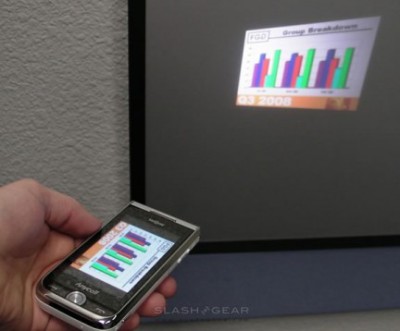 Nel settore della telefonia mobile sensibile al tocco, infatti, le novità in termini di design sono abbastanza rare. Ma la caratteristica principale di questo terminale è la presenza di un mini proiettore DLP che consente di proiettare all’esterno le immagini e i video contenuti nel dispositivo stesso, fino ad un’ampiezza massima di 50 pollici. Ciò che sorprende maggiormente del prodotto, a detta di chi ha avuto un incontro ravvicinato con esso, è la straordinaria qualità delle immagini proiettate, molto luminose anche in condizioni di non totale buio.