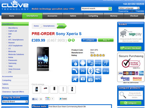 Lo store britannico Clove ha infatti aperto le prevendite per il Sony Xperia S offrendo il device a 467,99 £ (circa 566 euro) e prevedendo come prima data utile per le consegne il 5 marzo. Una data che non ha nulla di ufficiale ma che coincide perfettamente con la tempistica piuttosto generica fornita da Sony durante il Consumer Electronic Show di Las Vegas.