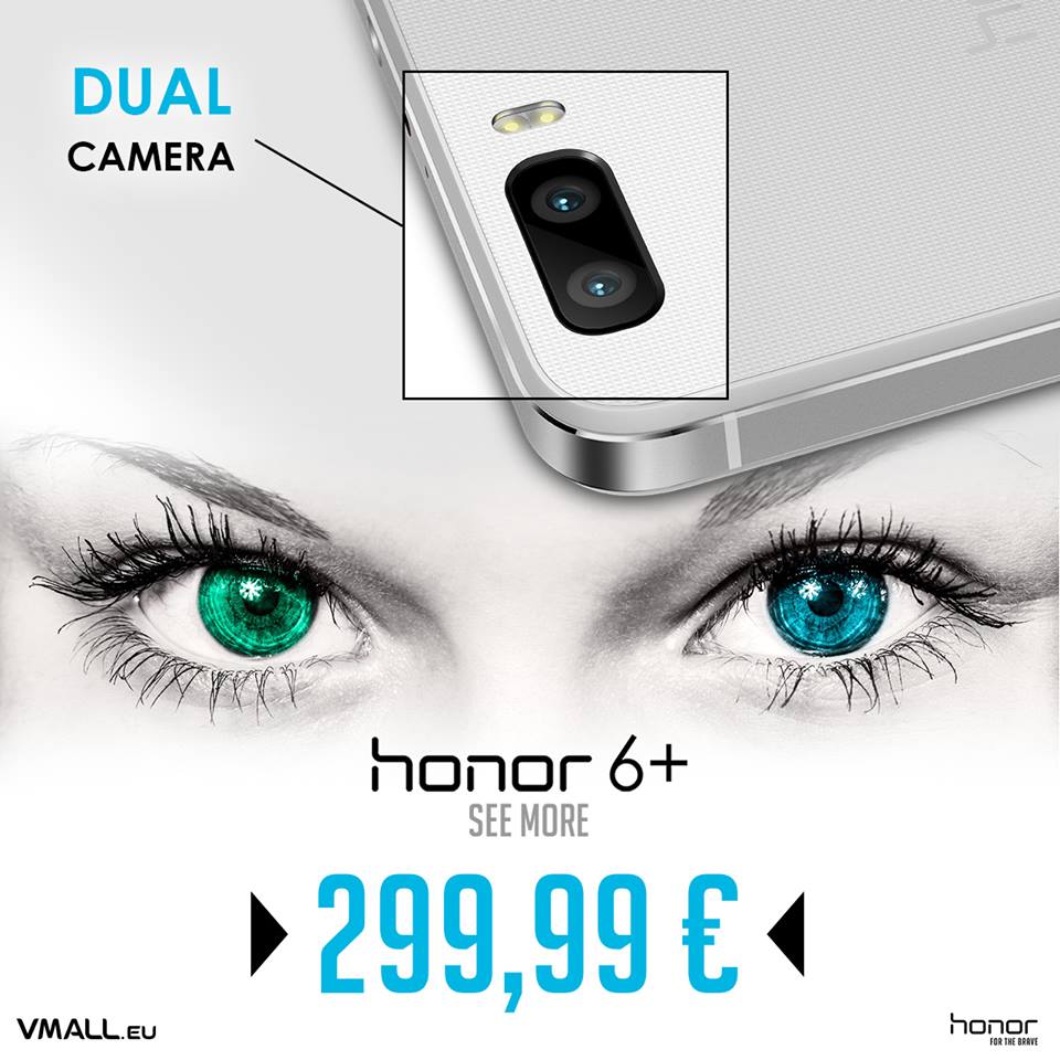 “Honor fans, abbiamo un’altra notizia importante per voi! Solo su vMall, e solo il prossimo lunedì 12 ottobre, honor 6+ sarà disponibile all’imbattibile prezzo di €299,99: doppia fotocamera, doppio sconto. Che aspettate? Correte a registrarvi su www.vmall.eu entro l’11 ottobre per poter approfittare di questa fantastica occasione e ottenere il buono sconto di €100 (fino ad esaurimento scorte)”.