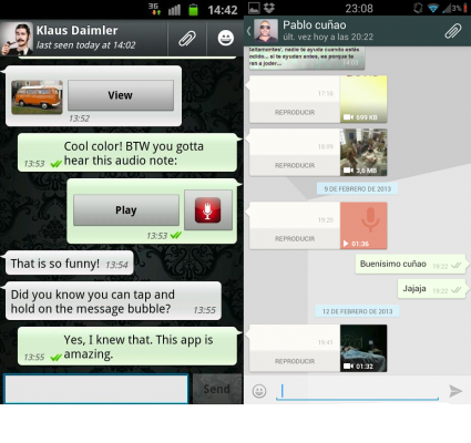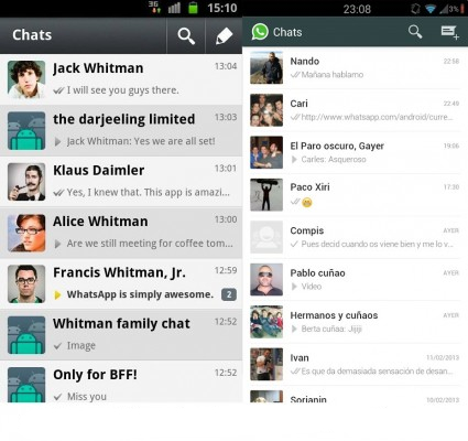 Gli sviluppatori di WhatsApp hanno rilasciato una nuova beta del programma per Android con interfaccia grafica completamente modificata. La beta di WhatsApp integra l’interfaccia Holo tipica di Android, al momento però questa versione non è ancora disponibile sul Google Play Store e può essere scaricata solo dal sito di WhatsApp.