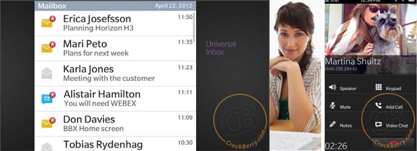 Come potete vedere dalle immagini, il nuovo OS presenta una nuova schermata home nella quale sarà possibile inserire i widget, novità assoluta per RIM.