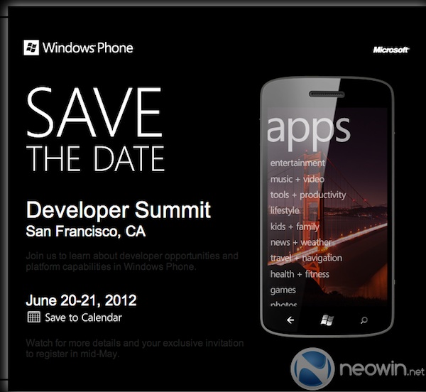 Microsoft ha annunciato una nuova conferenza per gli sviluppatori dedicata a Windows Phone per il prossimo mese. L’evento si terrà a San Francisco e, sebbene non ne siano stati ancora svelati i contenuti, c’è il sospetto che il 20 e il 21 giugno il colosso di Redmond possa togliere i veli da Windows Phone 8, il suo prossimo sistema operativo mobile.